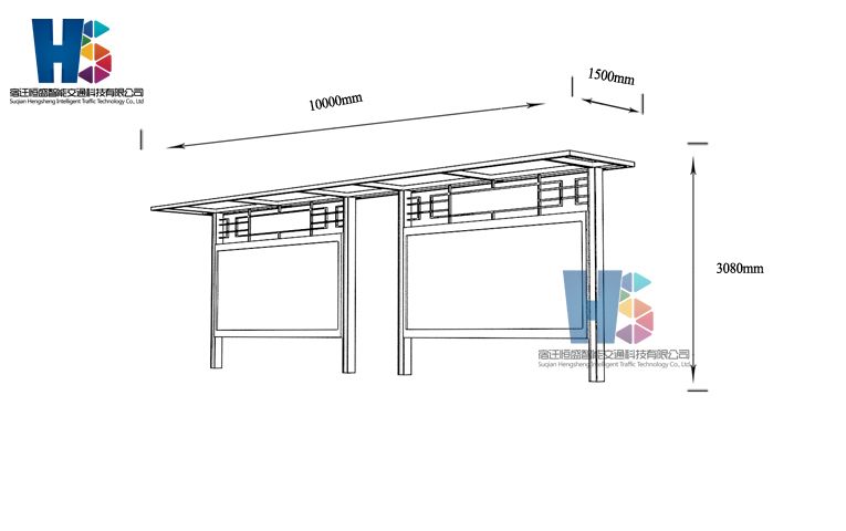 產(chǎn)品外觀 / PRODUCT DETAILS 產(chǎn)品信息 / PRODUCT INFO 【產(chǎn)品名稱】:城市品位候車亭PW11 【產(chǎn)品系列】:城市品位候車亭 【產(chǎn)品型號】:PW11 【產(chǎn)品規(guī)格】:長10800mm 寬1700mm 高2900mm 【產(chǎn)品材質(zhì)】:熱鍍鋅鋼板 【使用年限】:10-15年 【詳情致電】:181-5189-0417、157-5170-8886 備注:產(chǎn)品可根據(jù)用戶需求選用材質(zhì)、顏色及配件,個性化定制。 1、表面采用靜電噴塑(氟碳烤漆/搪瓷處理) 2、頂棚采用100*100*1.5mm、100*150*2mm鍍鋅管,3mm鍍鋅板激光切割件、1.5mm鍍鋅板焊接骨架,鋪1mm鍍鋅板(10mm陽光板) 3、立柱采用150*150*3mm鍍鋅管 4、箱體采用1.5mm鍍鋅板折彎焊接成型,門框采用全玻鋁合金型材,視窗采用6mm鋼化玻璃 5、照明電器采用LED燈粒 產(chǎn)品尺寸 / PRODUCT SIZE 關(guān)于輝盛 / 為社會分擔(dān)責(zé)任,為客戶創(chuàng)造價值 宿遷輝盛廣告設(shè)備有限公司是一家集設(shè)計、研發(fā)、生產(chǎn)為一體的城市公共設(shè)施生產(chǎn)型企業(yè)。主要產(chǎn)品有:候車公交亭、公交站臺、閱報欄、路名牌、垃圾箱、燈箱等市政設(shè)施系列產(chǎn)品和工程配套設(shè)施系列產(chǎn)品,現(xiàn)有高級技師30多人,高級職稱設(shè)計人員10人,是一家具有自主開發(fā)和設(shè)計能力的以公交亭、智能公交為主導(dǎo)的綜合性城市公共設(shè)施制造企業(yè)。為了進一步改善生產(chǎn)工藝,提高產(chǎn)品質(zhì)量,公司引進了先進生產(chǎn)設(shè)備,包括立臥式加工中心,工業(yè)涂裝流水線,CNC車床,線切割機,大型數(shù)控板機,數(shù)控折邊機,數(shù)控沖孔機床,大型折彎機等。公司還專門成立了產(chǎn)品研發(fā)部門,現(xiàn)每年自主開發(fā)或應(yīng)客戶要求設(shè)計推出多款新產(chǎn)品。 榮譽資質(zhì) / ENTERPRISE HONOR