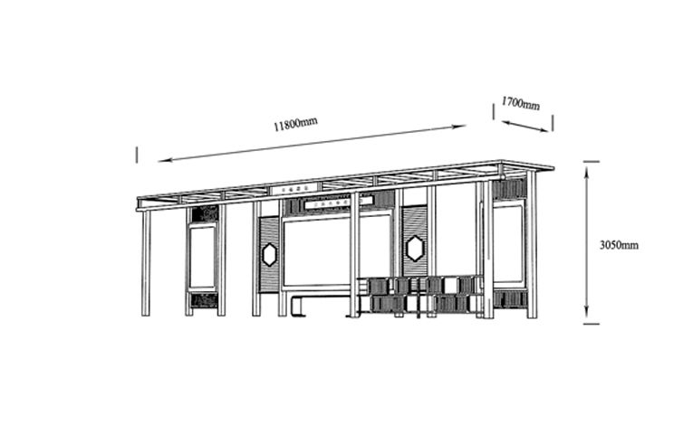 產(chǎn)品外觀 / PRODUCT DETAILS 產(chǎn)品信息 / PRODUCT INFO 【產(chǎn)品名稱】:城市品位候車亭PW8 【產(chǎn)品系列】:城市品位候車亭 【產(chǎn)品型號(hào)】:PW8 【產(chǎn)品規(guī)格】:長(zhǎng)10800mm 寬1700mm 高2900mm 【產(chǎn)品材質(zhì)】:熱鍍鋅鋼板 【使用年限】:10-15年 【詳情致電】:181-5189-0417、157-5170-8886 備注:產(chǎn)品可根據(jù)用戶需求選用材質(zhì)、顏色及配件,個(gè)性化定制。 1、表面采用靜電噴塑(氟碳烤漆/搪瓷處理) 2、頂棚采用100*100*1.5mm、100*150*2mm鍍鋅管,3mm鍍鋅板激光切割件、1.5mm鍍鋅板焊接骨架,鋪1mm鍍鋅板(10mm陽(yáng)光板) 3、立柱采用150*150*3mm鍍鋅管 4、箱體采用1.5mm鍍鋅板折彎焊接成型,門(mén)框采用全玻鋁合金型材,視窗采用6mm鋼化玻璃 5、照明電器采用LED燈粒 產(chǎn)品尺寸 / PRODUCT SIZE 關(guān)于輝盛 / 為社會(huì)分擔(dān)責(zé)任,為客戶創(chuàng)造價(jià)值 宿遷輝盛廣告設(shè)備有限公司是一家集設(shè)計(jì)、研發(fā)、生產(chǎn)為一體的城市公共設(shè)施生產(chǎn)型企業(yè)。主要產(chǎn)品有:候車公交亭、公交站臺(tái)、閱報(bào)欄、路名牌、垃圾箱、燈箱等市政設(shè)施系列產(chǎn)品和工程配套設(shè)施系列產(chǎn)品,現(xiàn)有高級(jí)技師30多人,高級(jí)職稱設(shè)計(jì)人員10人,是一家具有自主開(kāi)發(fā)和設(shè)計(jì)能力的以公交亭、智能公交為主導(dǎo)的綜合性城市公共設(shè)施制造企業(yè)。為了進(jìn)一步改善生產(chǎn)工藝,提高產(chǎn)品質(zhì)量,公司引進(jìn)了先進(jìn)生產(chǎn)設(shè)備,包括立臥式加工中心,工業(yè)涂裝流水線,CNC車床,線切割機(jī),大型數(shù)控板機(jī),數(shù)控折邊機(jī),數(shù)控沖孔機(jī)床,大型折彎?rùn)C(jī)等。公司還專門(mén)成立了產(chǎn)品研發(fā)部門(mén),現(xiàn)每年自主開(kāi)發(fā)或應(yīng)客戶要求設(shè)計(jì)推出多款新產(chǎn)品。 榮譽(yù)資質(zhì) / ENTERPRISE HONOR